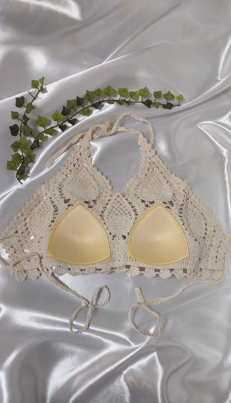 نیم تنه بافتنی کروشهای دورگردنی (Halter Top) – طرح خامه دوزی، وارداتی و پشت بندی